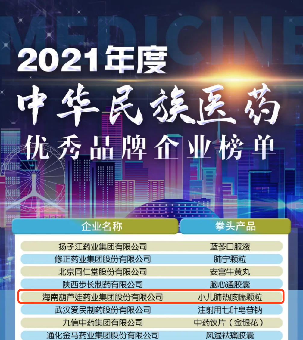 12月29日,全国工商联医药业商会发布了“2021年度中华民族医药优秀品牌企业榜单”,德扑之星药业集团凭借黄金单品小儿肺热咳喘颗粒(4克)实力登榜。